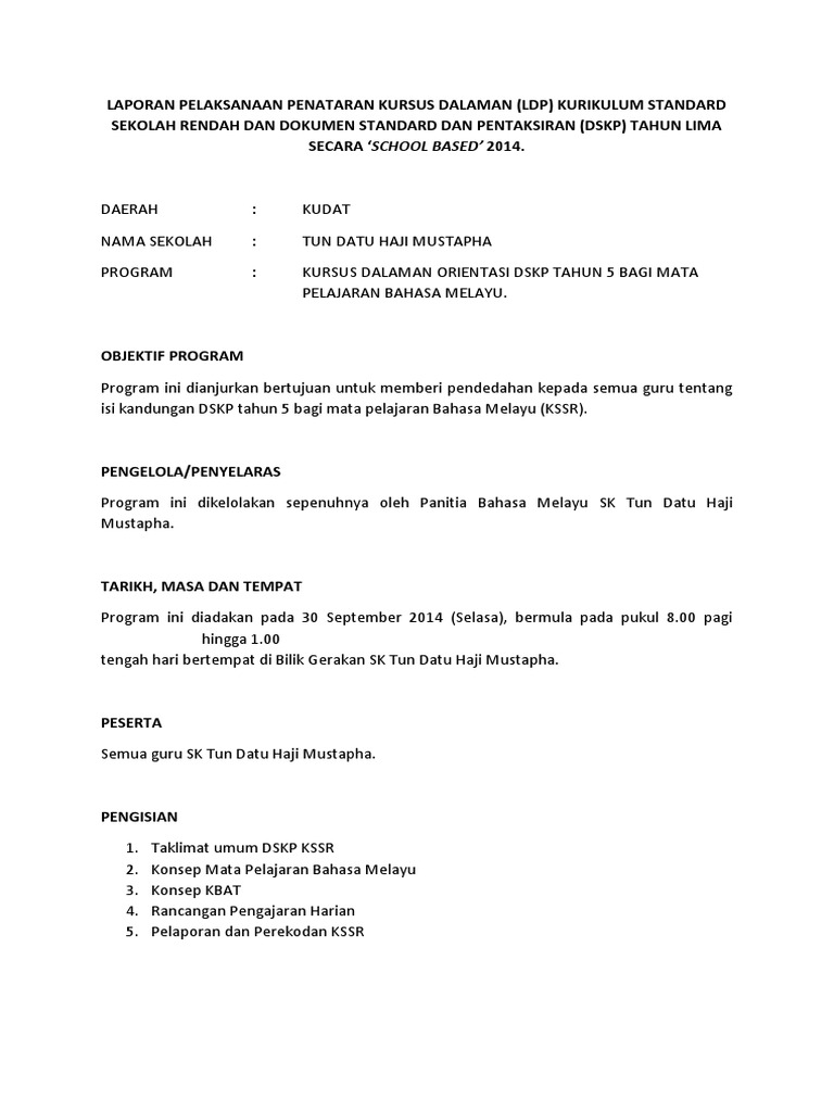 Laporan Pelaksanaan Penataran Kursus Dalaman Pdf